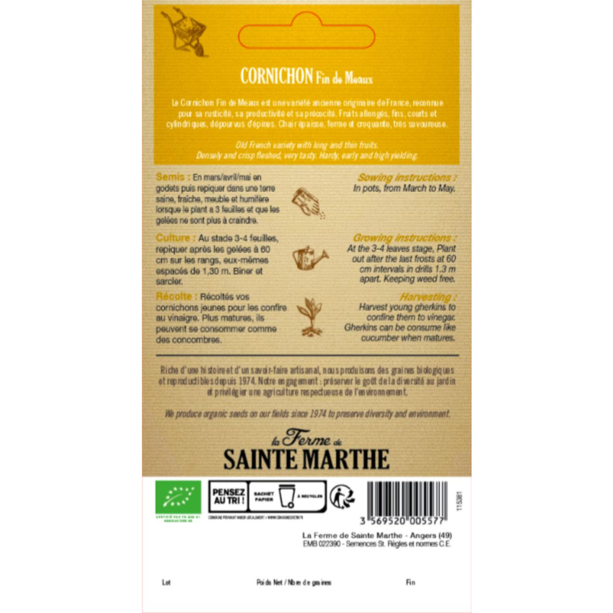 Semences certifiées biologiques, cultivées en France.