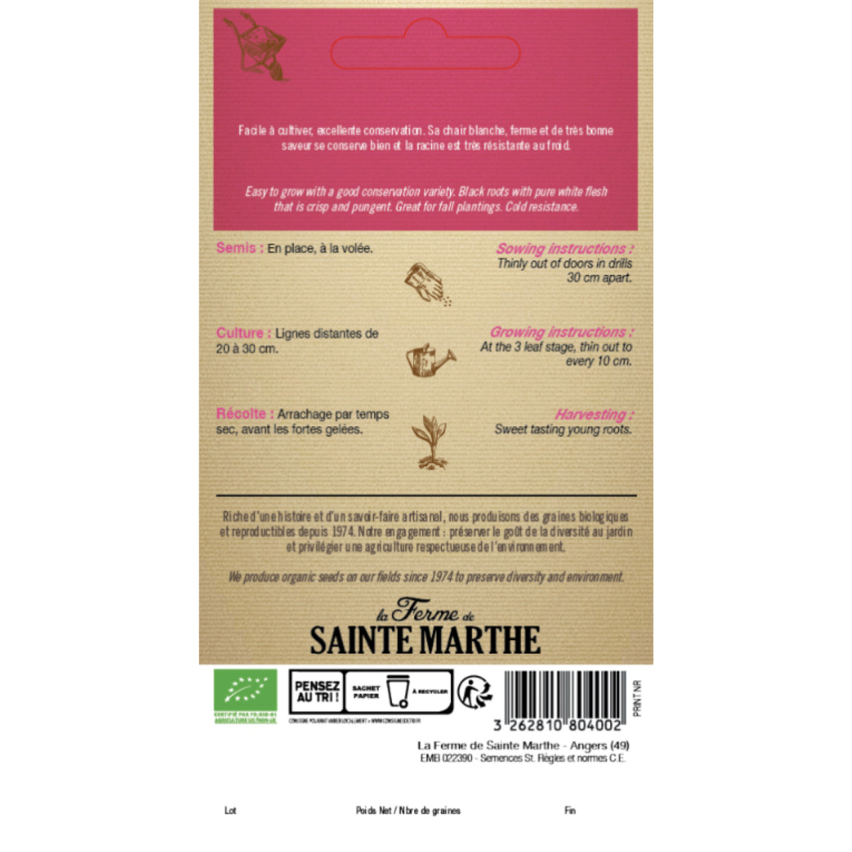 Le navet noir long se caractérise par sa racine allongée à la peau noire et à la chair blanche, ferme et naturellement sucrée. C’est une variété traditionnelle de fin de saison, réputée pour sa robustesse et sa capacité à se conserver facilement après récolte.