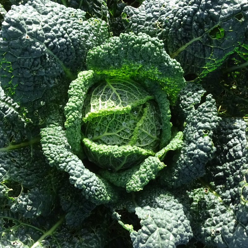 Variété produisant des grosses pommes rondes légèrement aplaties sur le dessus d'environ 2 kg. Feuilles vertes frisées.