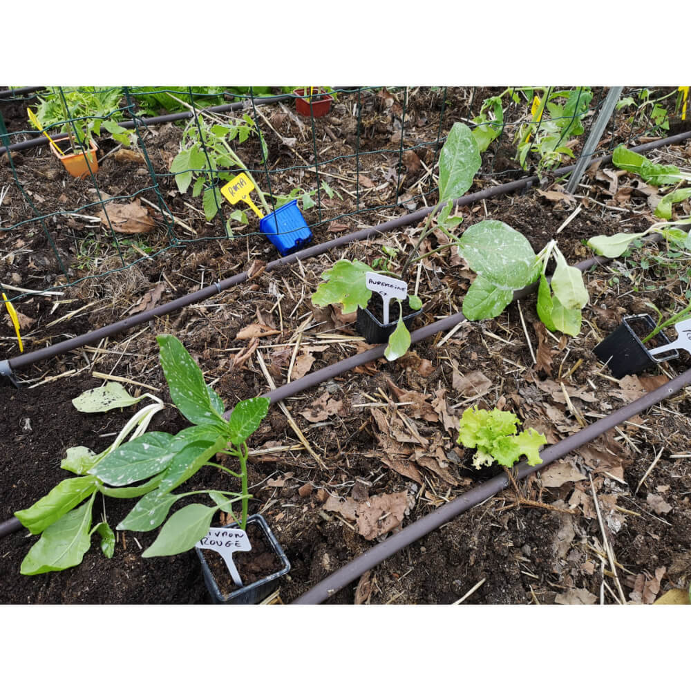 Ce potager est muni d’un système complet d’arrosage automatique par goutte à goutte pour un arrosage précis, économique et dosé.