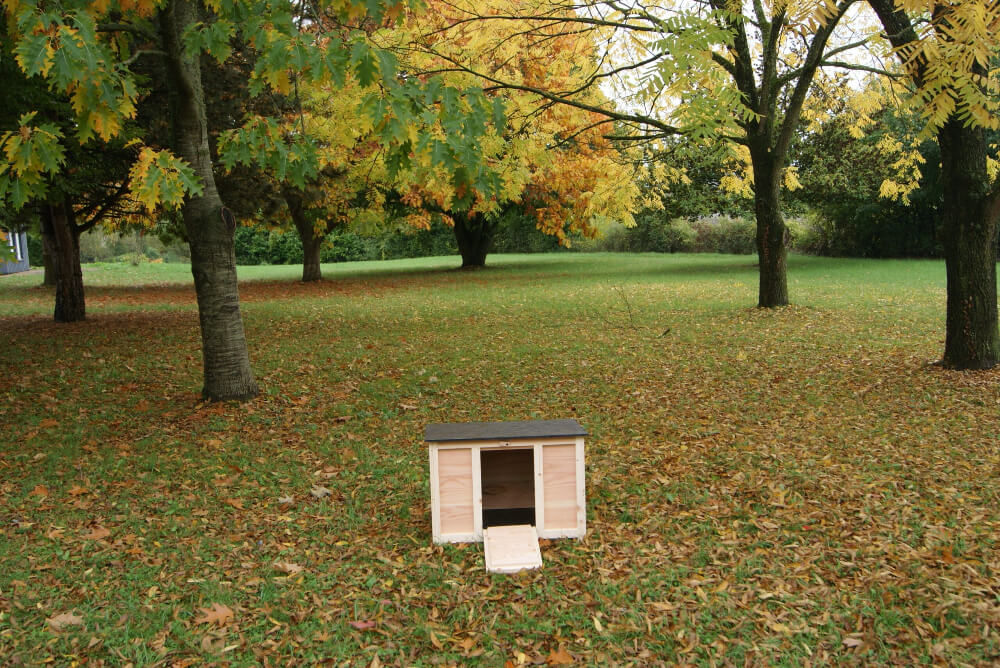 Accessible grâce à sa porte d'accès et son toit amovible, le poulailler est facile d'entretien.