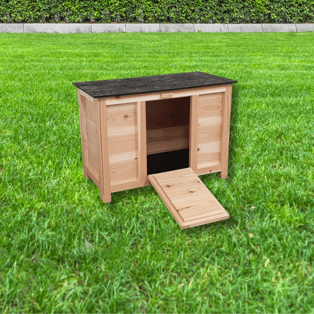 Facilité de nettoyage : Le toit de l'habitat ainsi que celui du pondoir sont amovibles, ce qui facilite le nettoyage du poulailler. Cela permet de maintenir une hygiène optimale pour les poules.