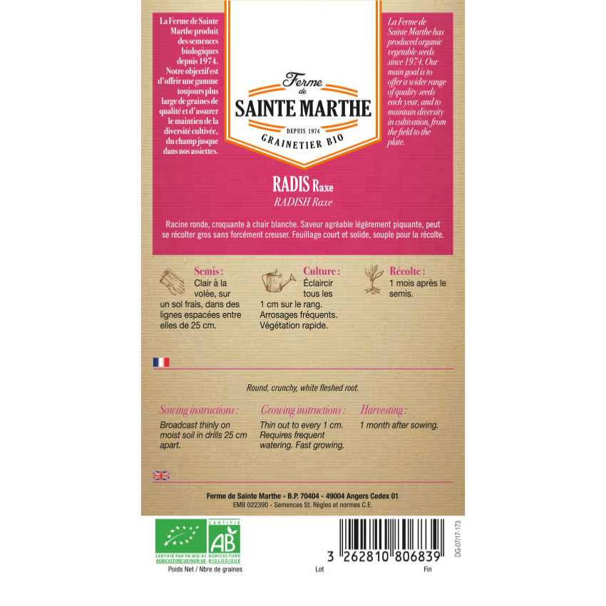 Le radis est croquant, a une saveur agréable et légèrement piquante.