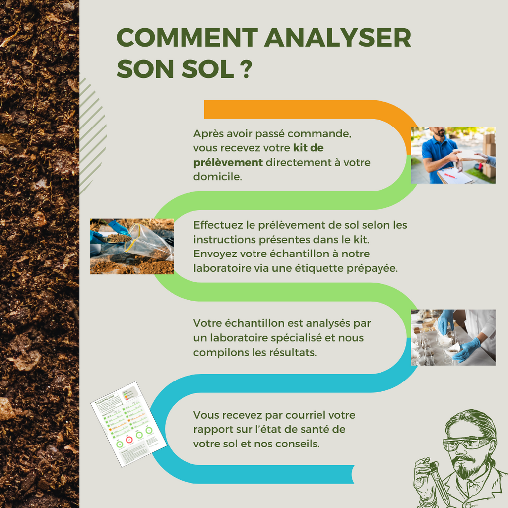 Analyse de la pollution du sol proposée en exclusivité par MonJardinBio.com en partenariat avec un laboratoire spécialiste de l'analyse des polluants du sol, accrédité COFRAC.