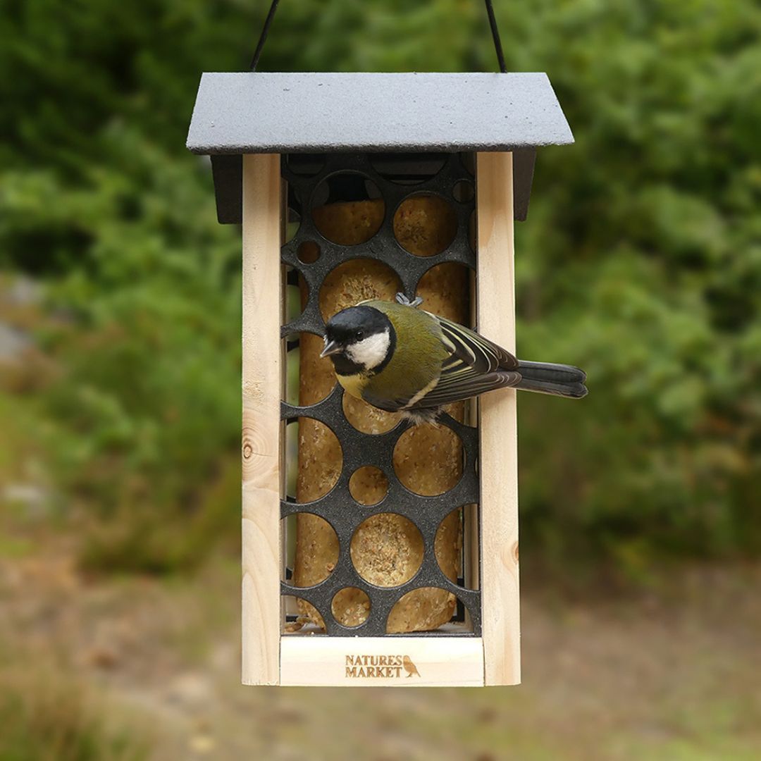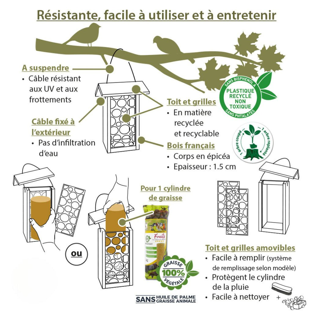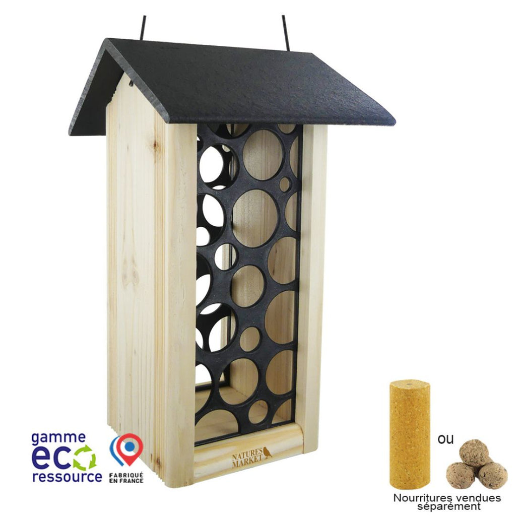 Protection optimale : Son large toit protège les graines et les cylindres de graisse végétale des intempéries.