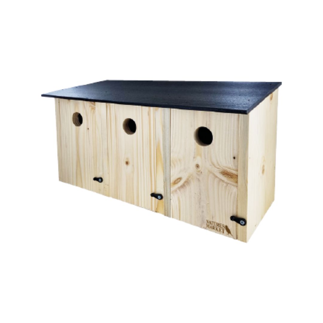 Conçu pour accueillir jusqu'à 3 familles d'oiseaux grâce à ses trois ouvertures indépendantes.