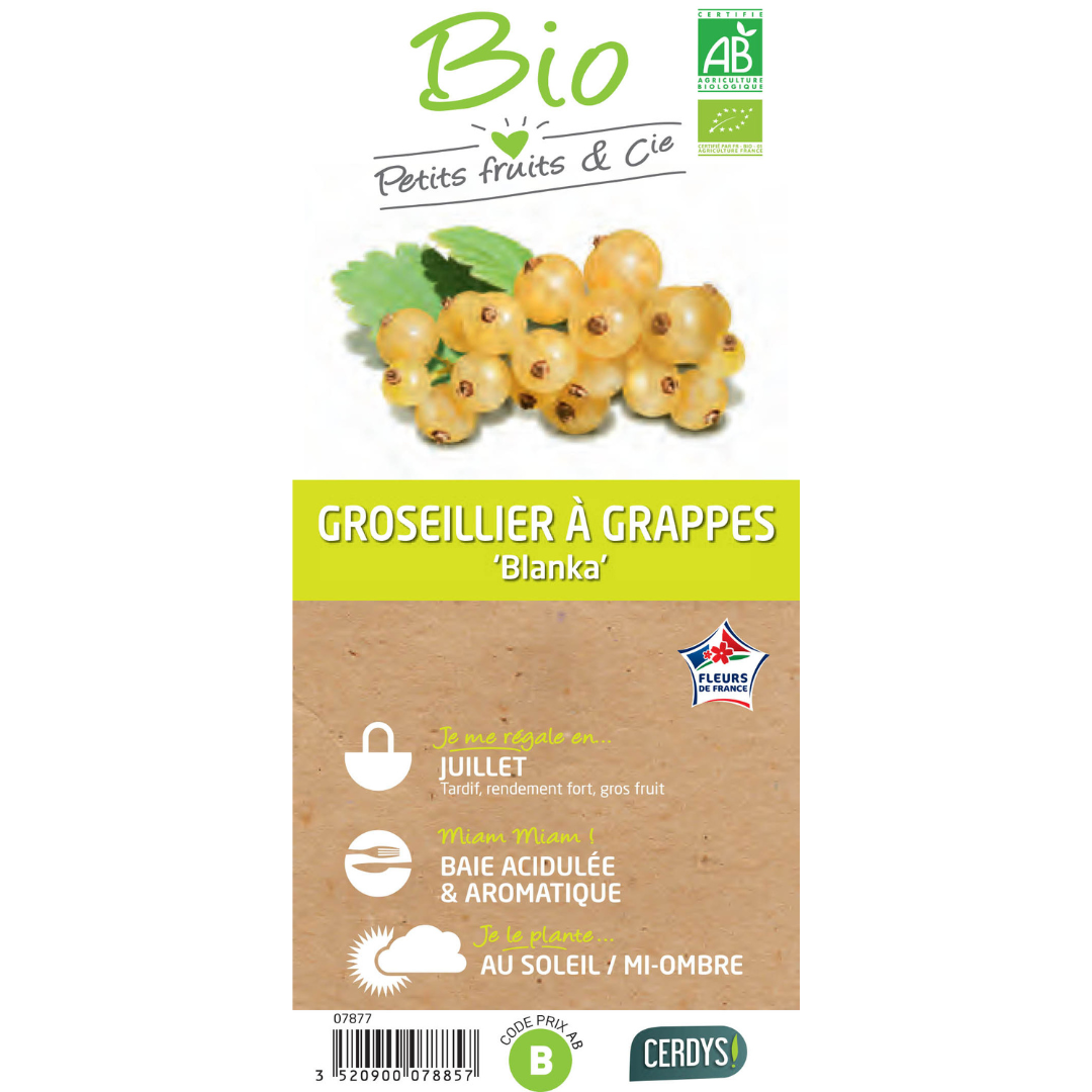 Le Groseillier Blankaest un arbuste fruitier robuste et rustique. Ses baies sont grosses et légèrement acidulées. Idéal frais, en salades de fruits, en pâtisserie, ou en confiture...