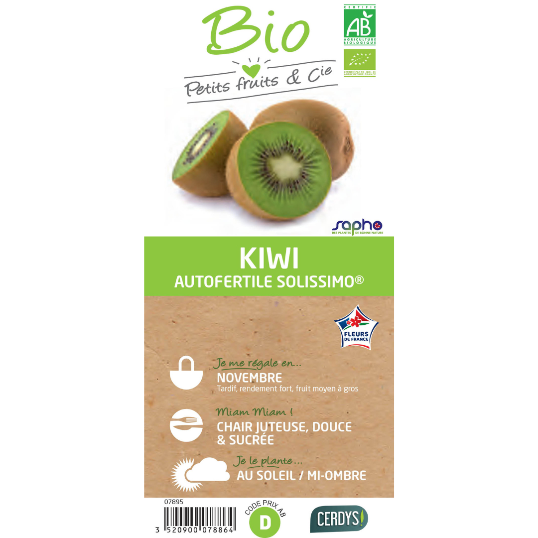 Le Kiwi Solissimo est un arbuste fruitier grimpant autofertile. Riches en vitamine C, ses fruits ont une chair douce et juteuse. Idéal cru, en salade de fruits, ou en confiture...