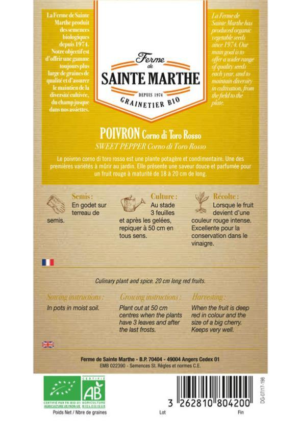 Le Poivron Corno di Toro Rosso est à semer dès février/mars en godets à une température minimum de 20° dans un endroit lumineux.