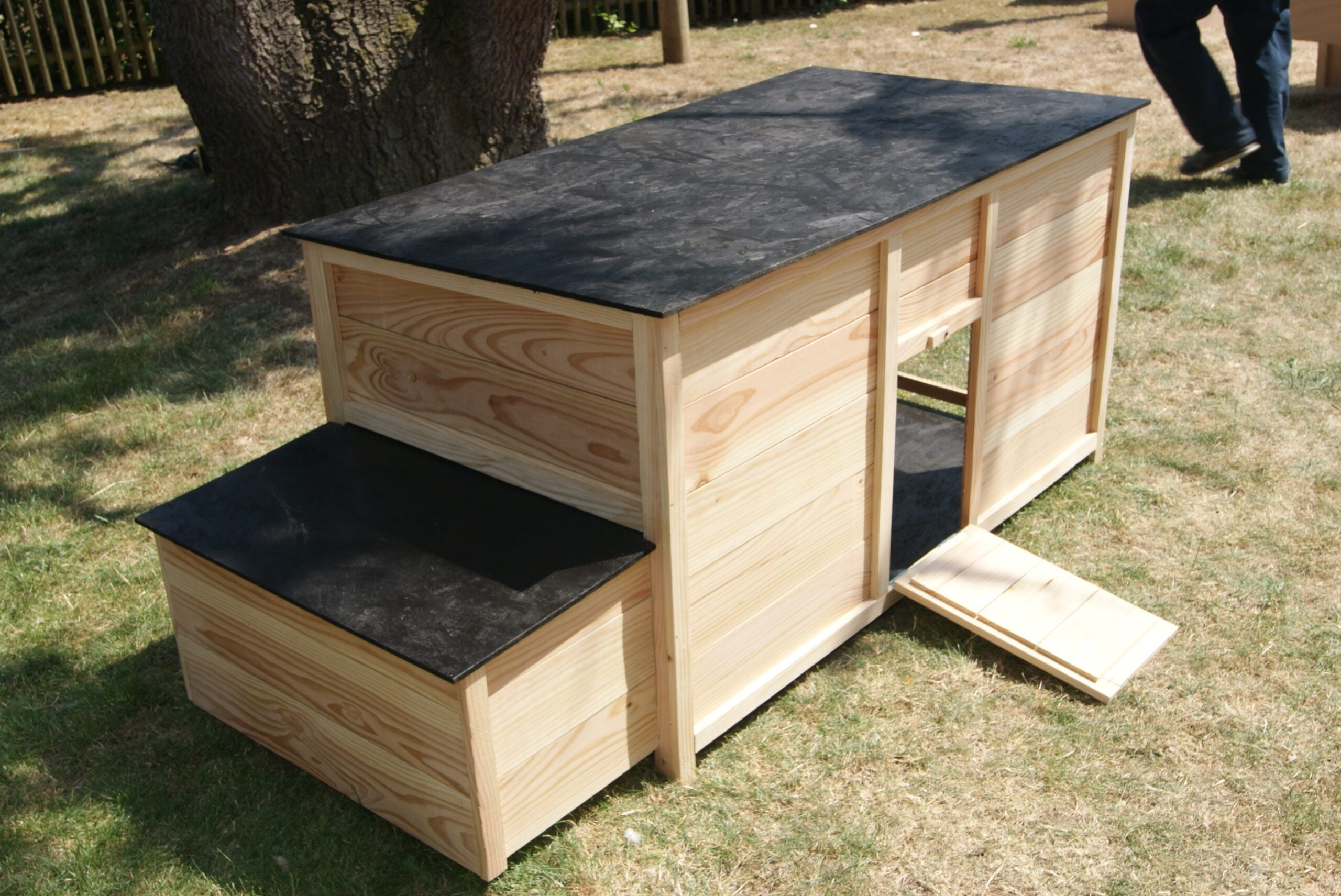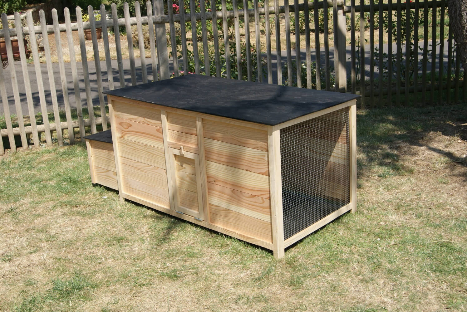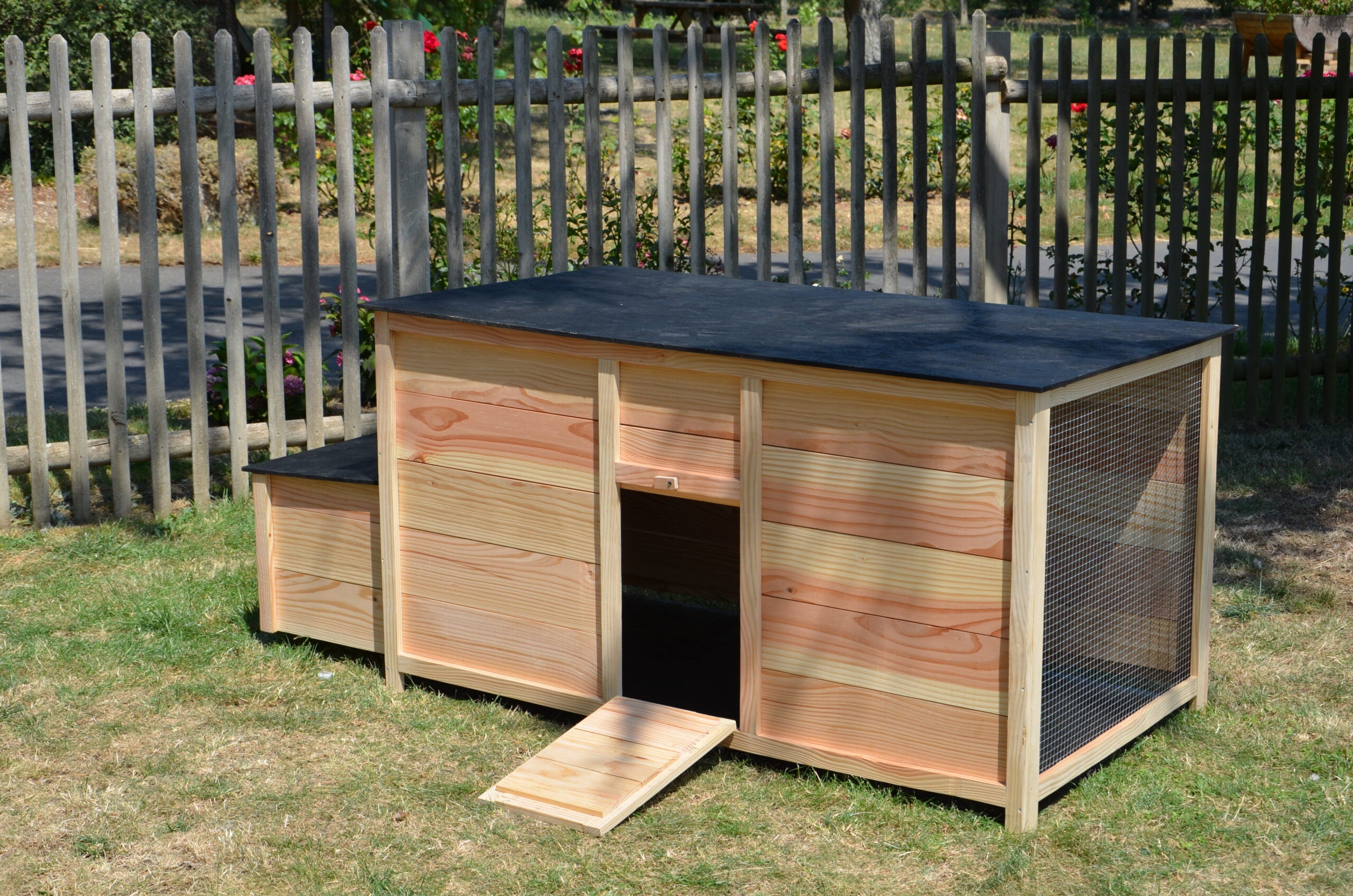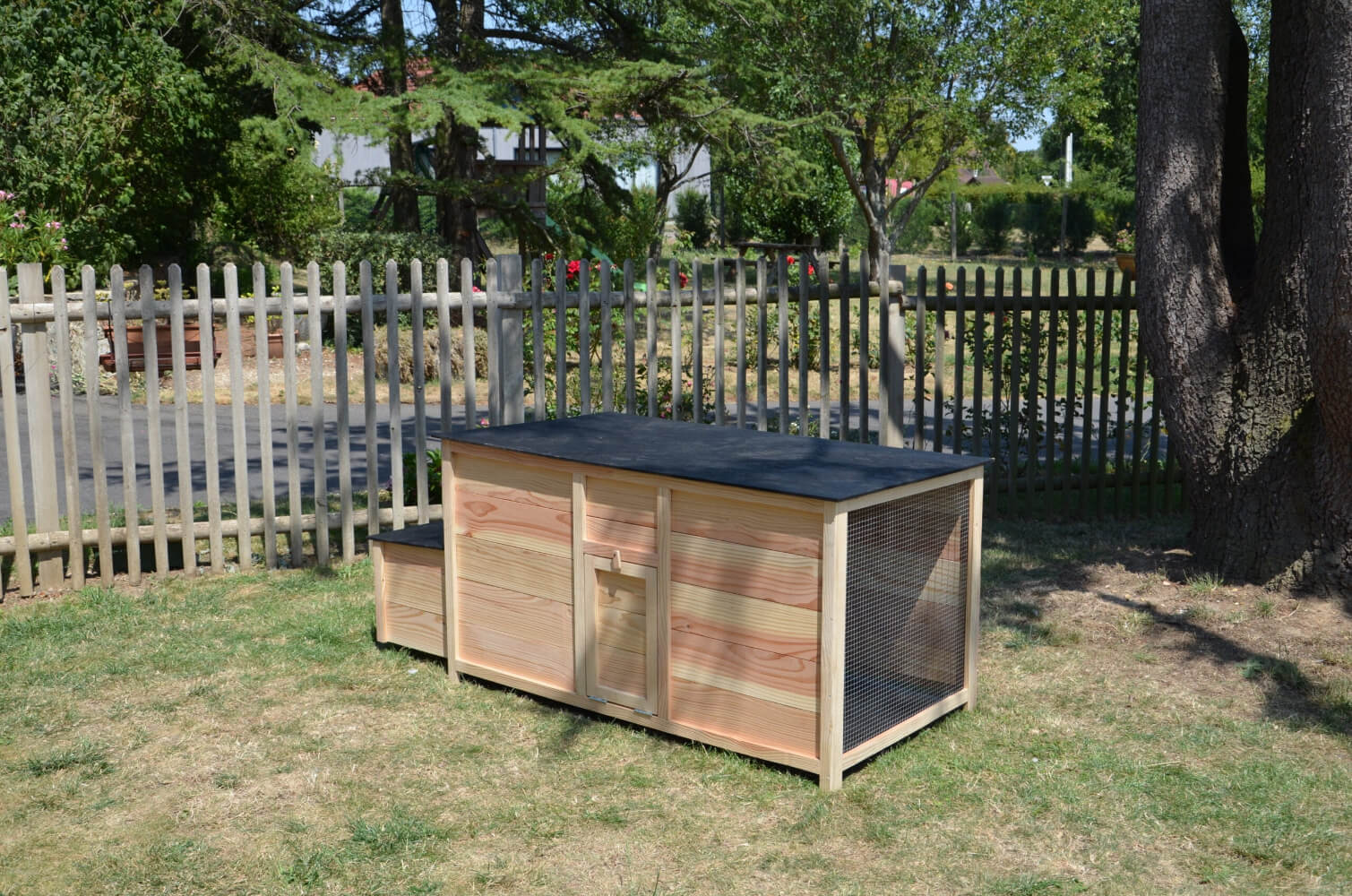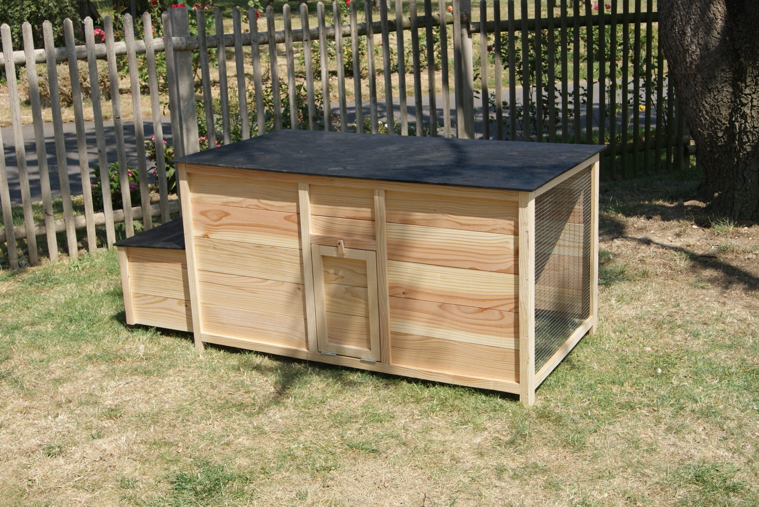 Accessible grâce à sa porte d’accès et son toit amovible, le poulailler est facile d’entretien.