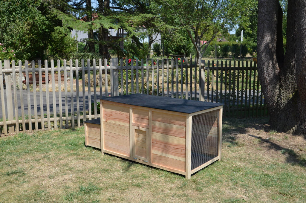 Facilité de nettoyage : Le toit de l'habitat ainsi que celui du pondoir sont amovibles, ce qui facilite le nettoyage du poulailler. Cela permet de maintenir une hygiène optimale pour les poules.