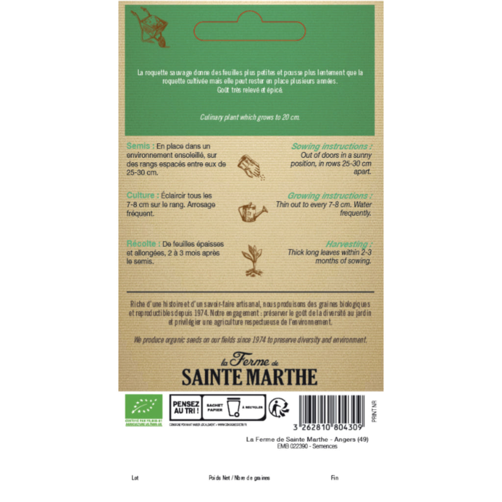 La roquette sauvage a des feuilles plus petites que la roquette cultivée et pousse plus lentement.