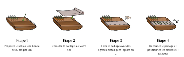 Se découpe facilement avec des ciseaux selon les dimensions souhaitées pour une utilisation en pleine terre, dans les massifs, au pied des arbres, arbustes, grands rosiers mais aussi au verger ou au potager.