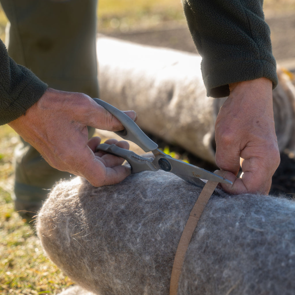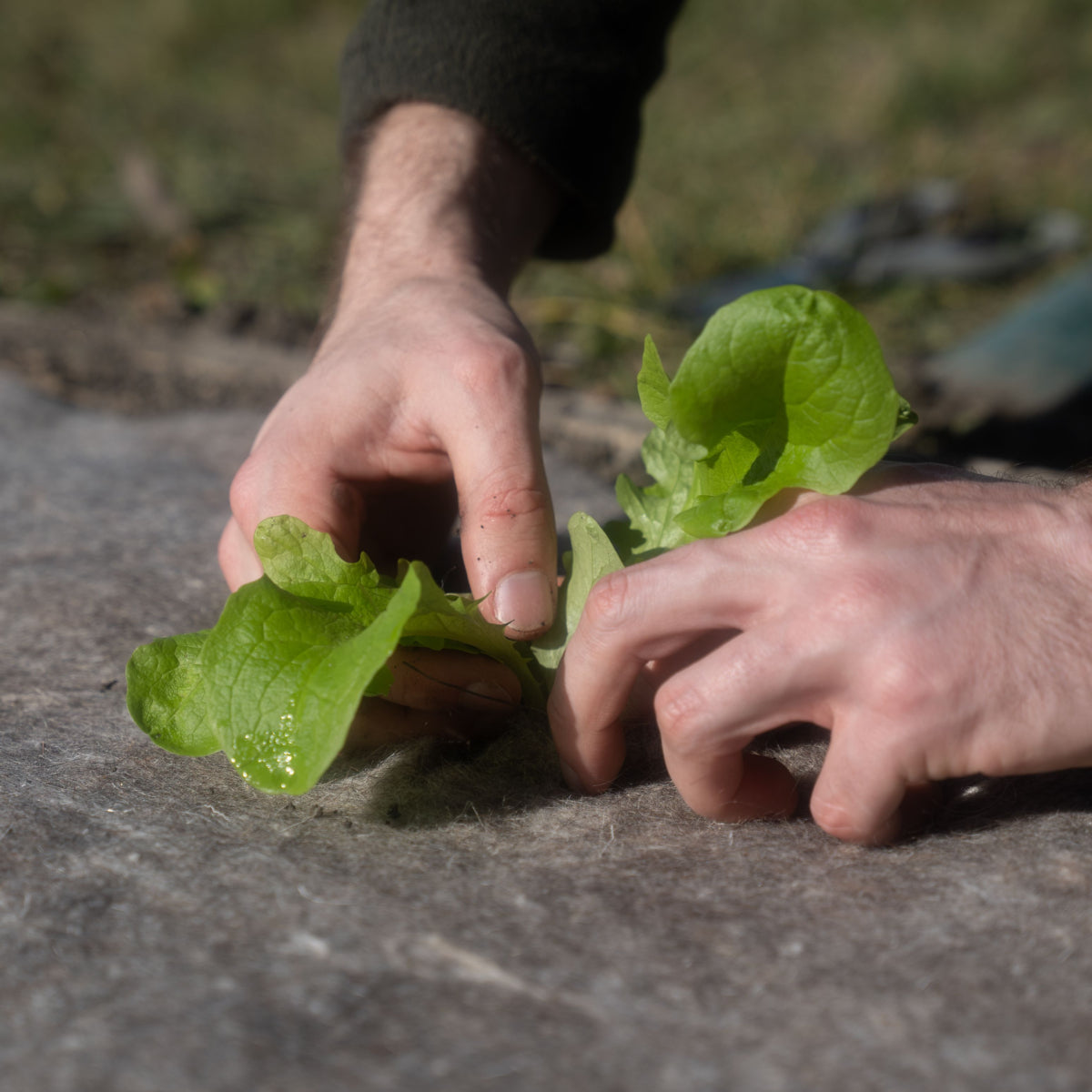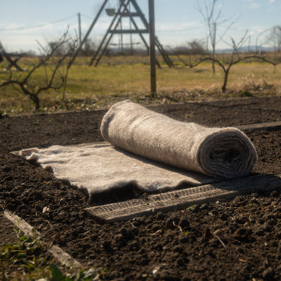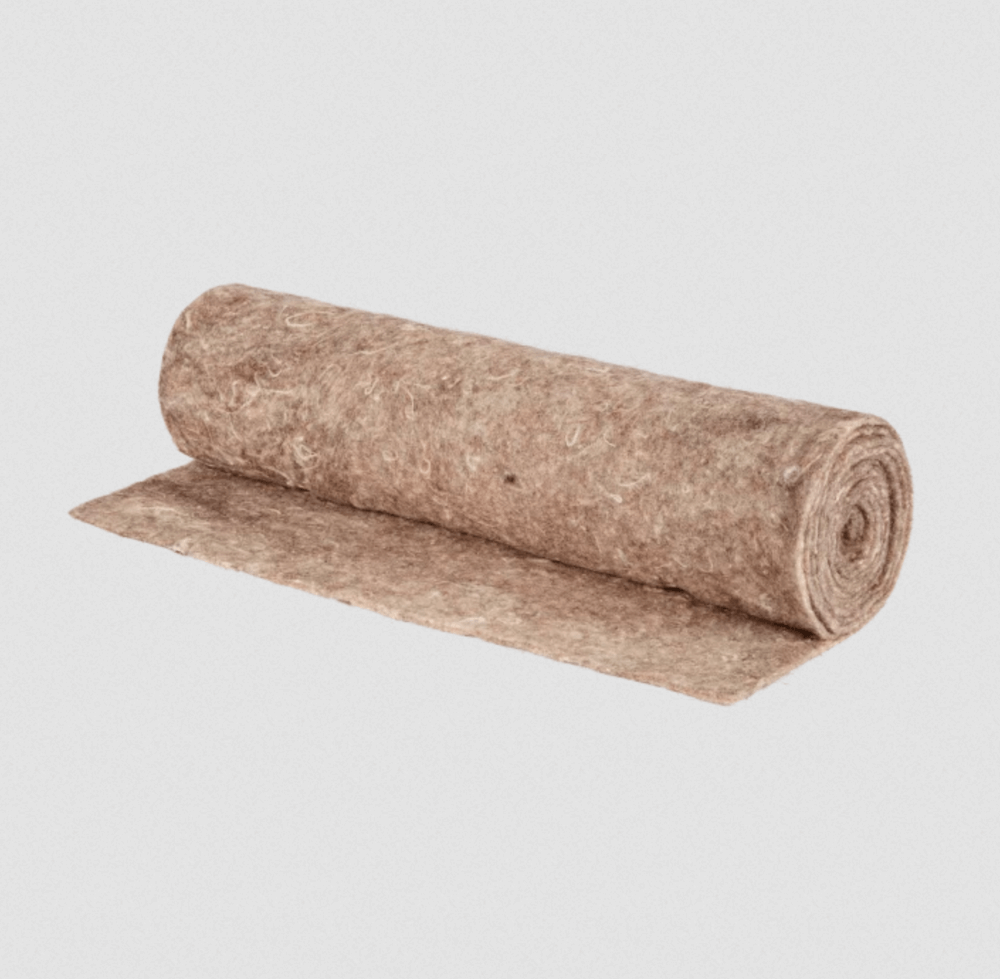 Rouleau de paillage à base de cheveux recyclés et de laine destinés à être jetés.